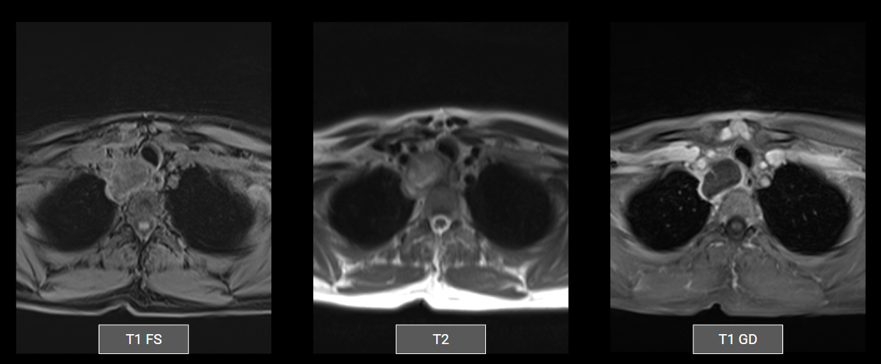 • Diferenciais: timoma, linfoma, tumor de células germinativas, carcinoma mediastinal, metástase linfonodal, tumores de bainha nervosa e divertículo de Zenker.