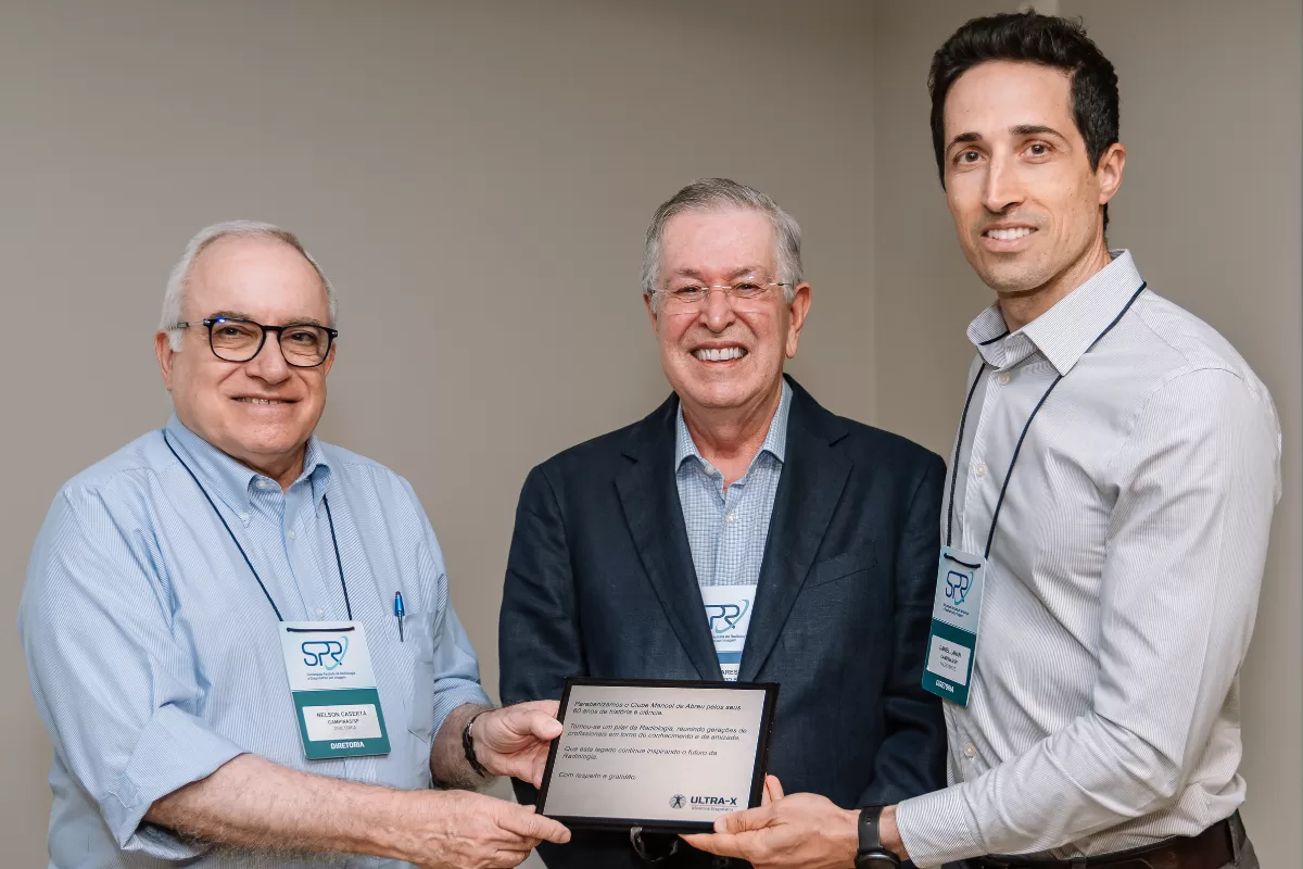 Durante a sessão, Dr. Nelson Caserta recebeu uma homenagem da empresa Ultra-X Medicina Diagnóstica em reconhecimento à contribuição do Clube Manoel de Abreu ao longo dos seus 60 anos de história.