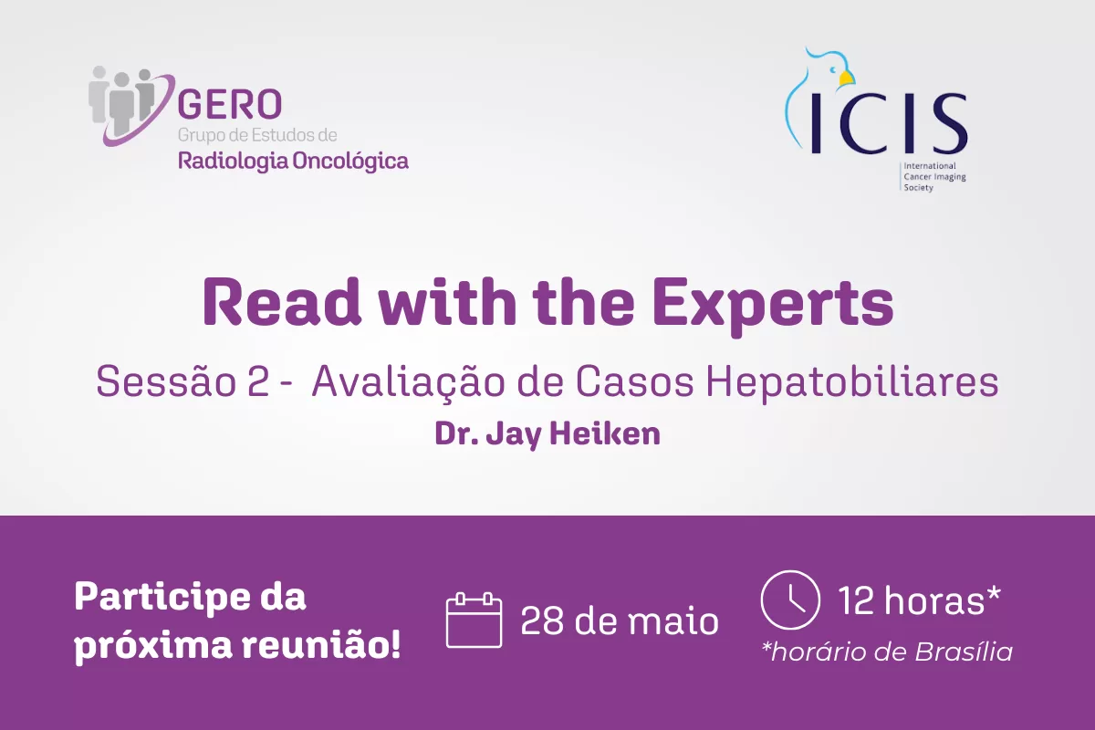 A reunião mensal do Grupo de Estudos de Radiologia Oncológica (GERO) de agosto será realizada durante a sessão Read with the Experts – Hepatobiliary: Segment 2 promovida pela International Cancer Imaging Society (ICIS) em parceria com a SPR. O encontro online será transmitido via plataforma Zoom & Collective Minds em 28 de agosto, às 12h (horário de Brasília).