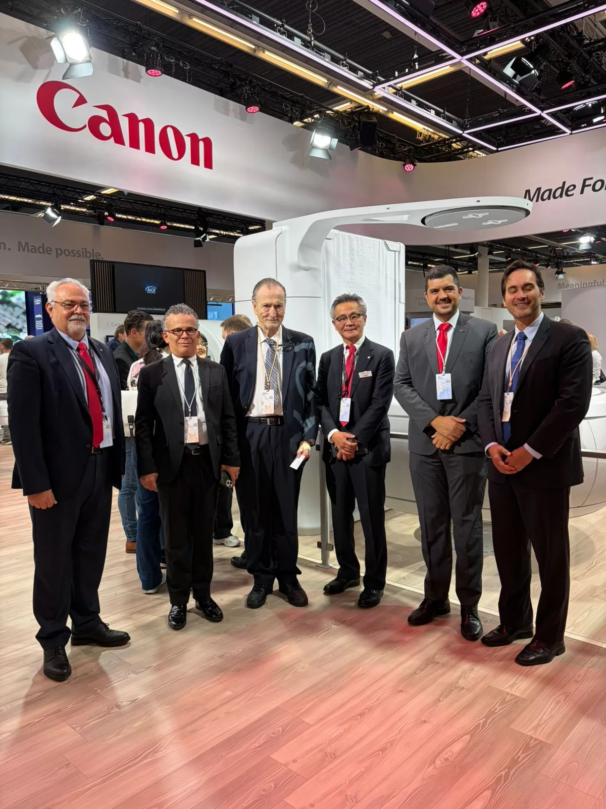 A agenda também incluiu encontros com sociedades europeias de subespecialidades, como a European Society of Urogenital Radiology – ESUR e a European Society of Neuroradiology – ESNR, além de uma reunião institucional com a Canon Medical Systems.