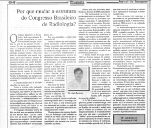 Pensando nisso, Dr. Luiz Karpovas, presidente do CBR na época, escreveu uma proposta no Jornal da Imagem em 1995. Ele destacou três razões principais para a necessidade de reformular a estrutura do Congresso Brasileiro de Radiologia: