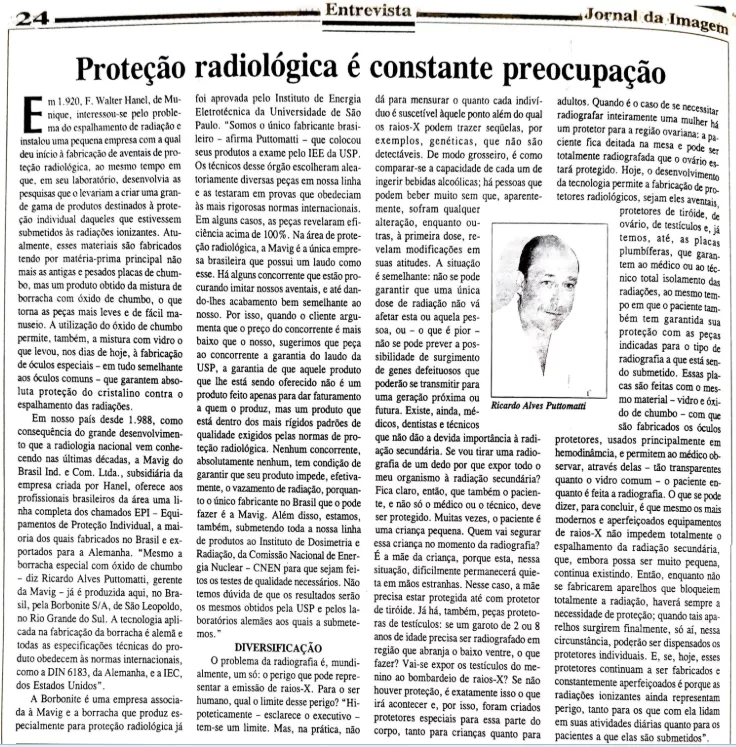 A proteção radiológica era apontada como uma preocupação permanente dos especialistas e fabricantes da área nuclear, segundo entrevista publicada no período. O avanço da radiologia no Brasil, especialmente a partir da década de 1980, ampliou o uso de equipamentos emissores de radiação ionizante, tornando indispensável o desenvolvimento e a adoção de materiais de proteção individual e coletiva. Aventais, protetores de tireoide, óculos e placas plumbíferas passaram a ser produzidos com maior rigor técnico, seguindo normas internacionais de segurança.